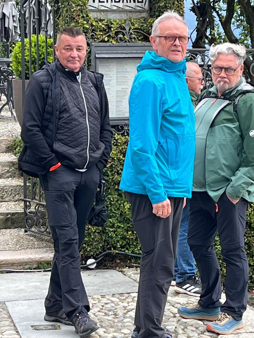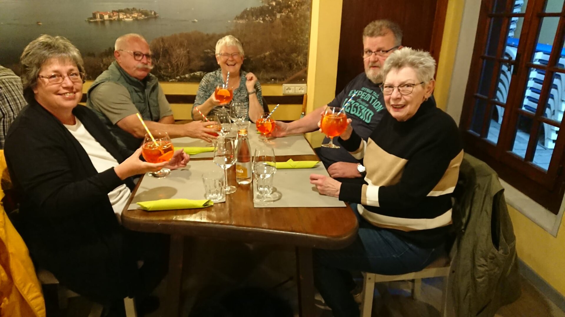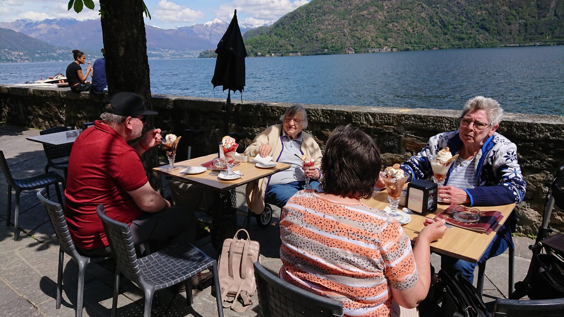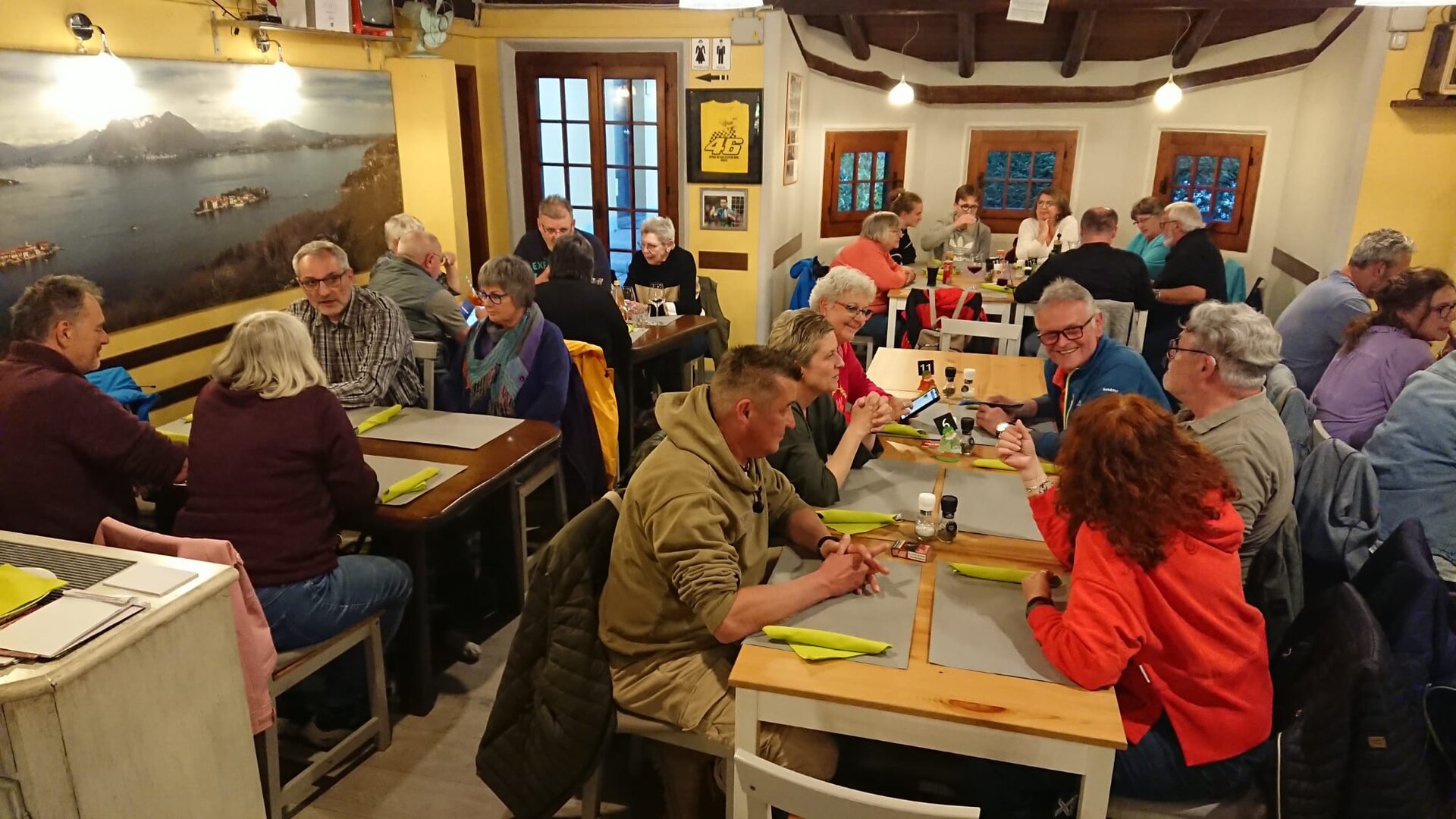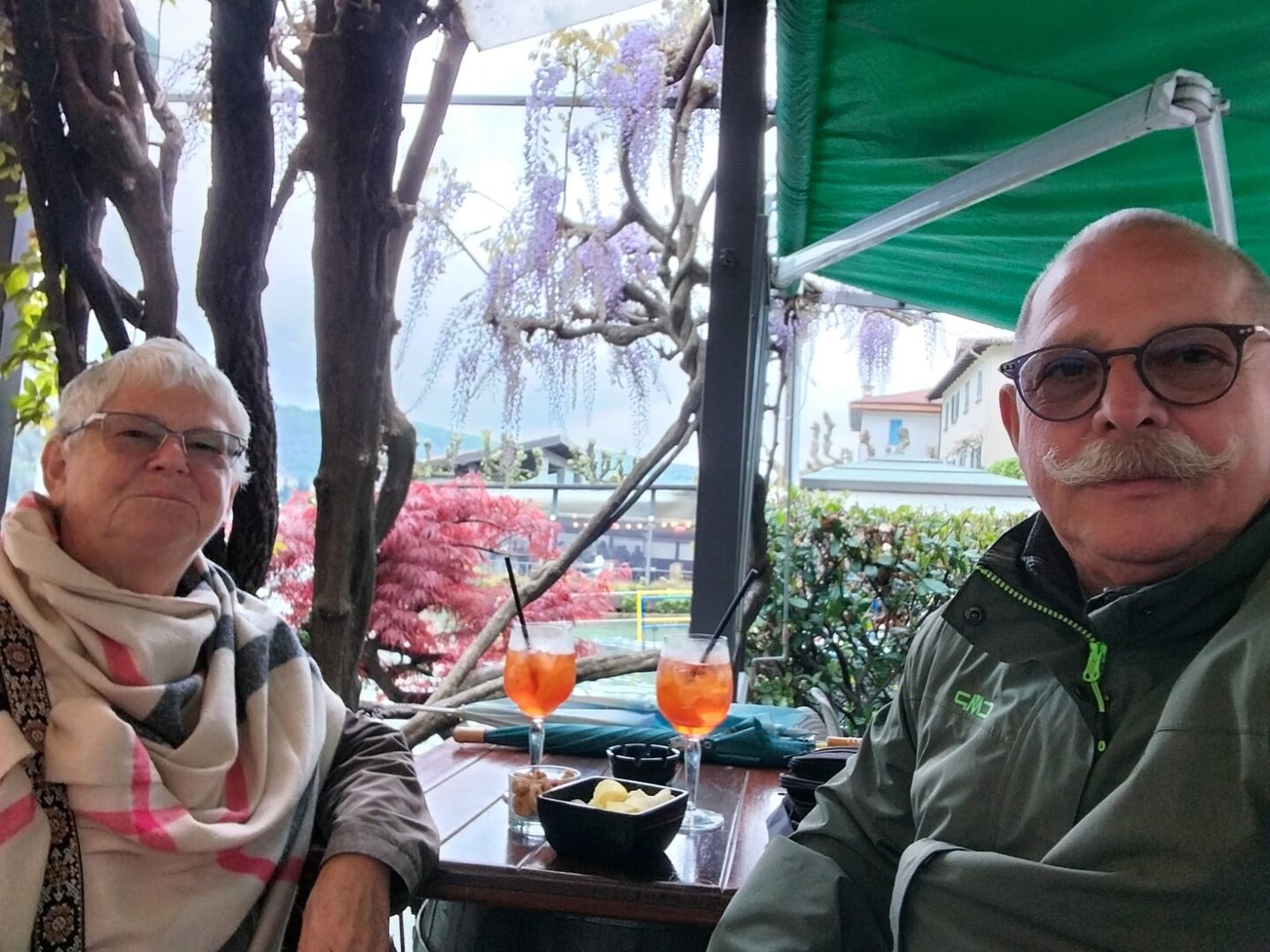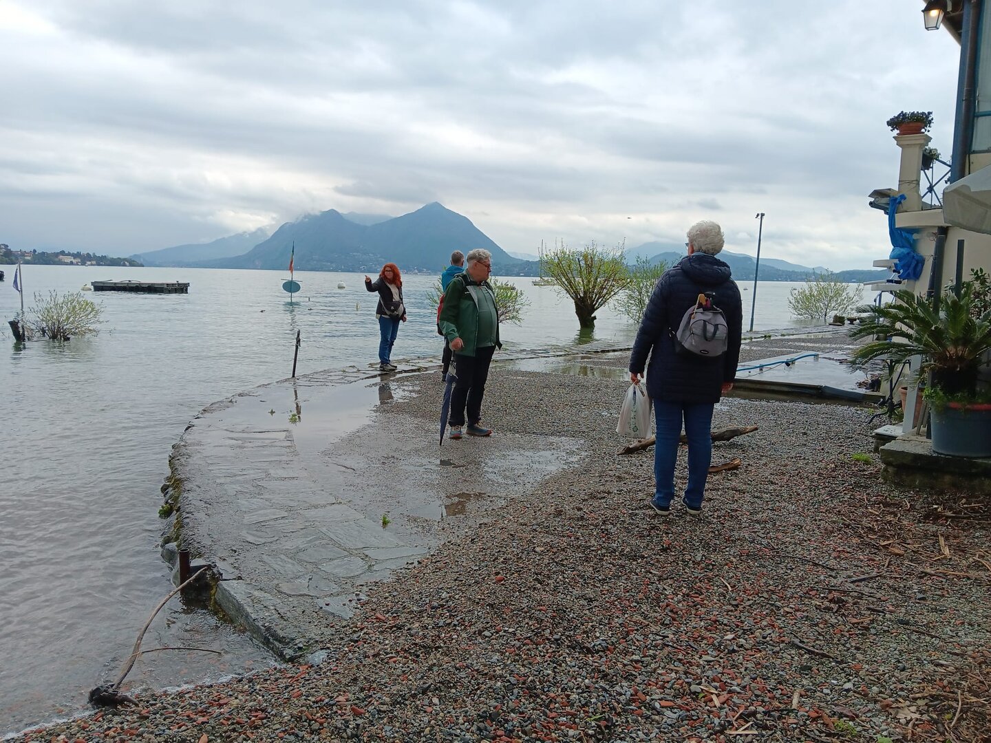 Am Samstag hatte man auf der Schifffahrt zu der Isola Bella und Isola Pescatori noch Glück mit dem Wetter. Es war zwar grau, jedoch fast regenfrei. Drei Mal wurde der Rollator auf das schwankende Boot gehievt und die älteste Teilnehmerin mit Mitte 80 kletterte hinterher. Auch auf den Inseln war das vorankommen nicht immer leicht. Doch gemeinsam klappte es ganz gut. Es war ein sehr schöner Ausflug. Gut die Hälfte schlief bei den schaukelnden Bewegungen der Bootes während der Rückfahrt ein. Abends war ein gemeinsamer Restaurantbesuch auf dem Nachbarcampingplatz angesagt.
