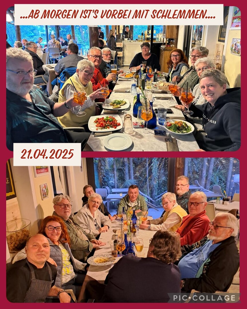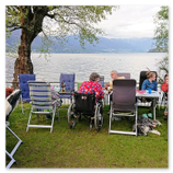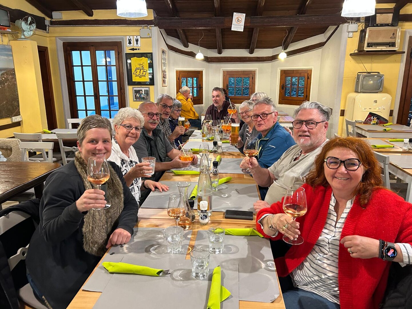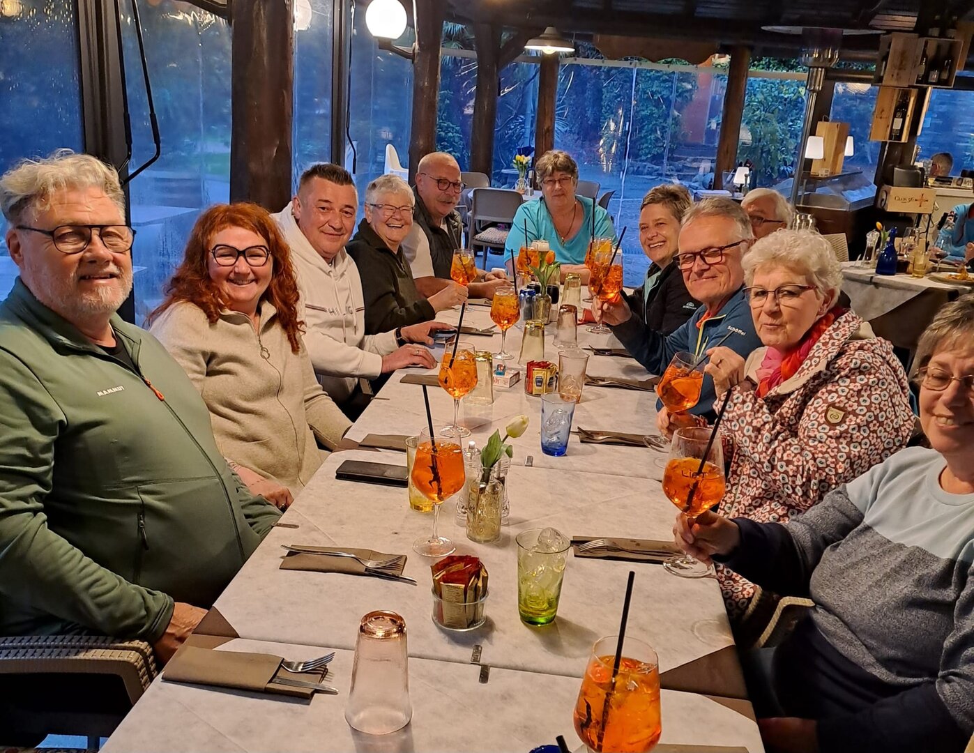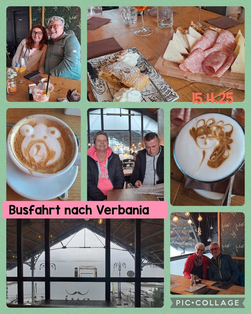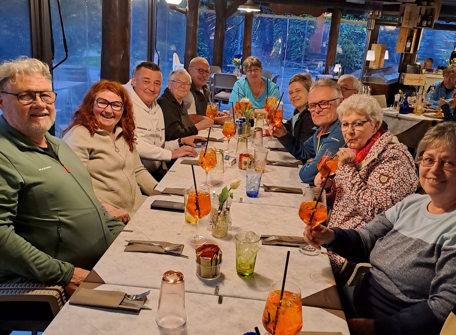 Am Samstag hatte man auf der Schifffahrt zu der Isola Bella und Isola Pescatori noch Glück mit dem Wetter. Es war zwar grau, jedoch fast regenfrei. Drei Mal wurde der Rollator auf das schwankende Boot gehievt und die älteste Teilnehmerin mit Mitte 80 kletterte hinterher. Auch auf den Inseln war das vorankommen nicht immer leicht. Doch gemeinsam klappte es ganz gut. Es war ein sehr schöner Ausflug. Gut die Hälfte schlief bei den schaukelnden Bewegungen der Bootes während der Rückfahrt ein. Abends war ein gemeinsamer Restaurantbesuch auf dem Nachbarcampingplatz angesagt.
