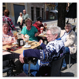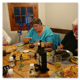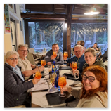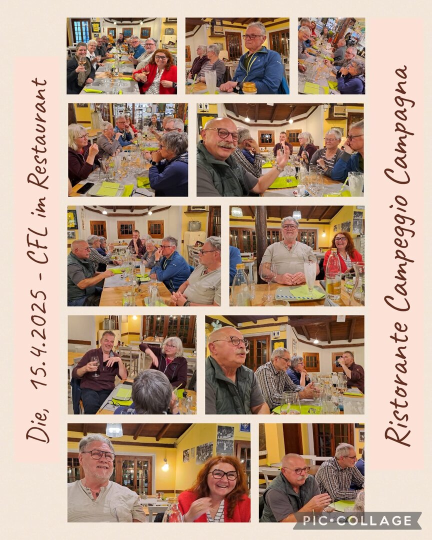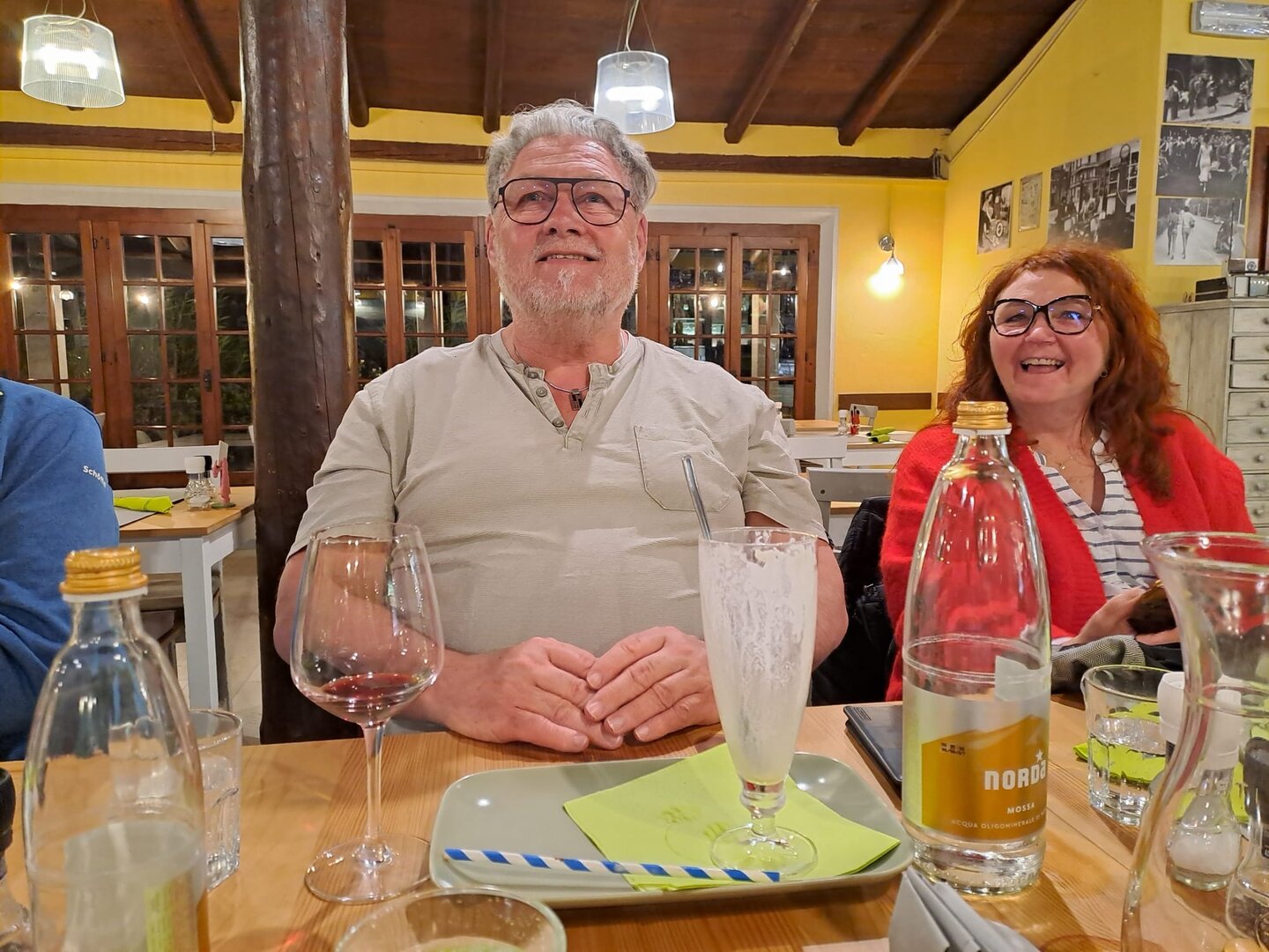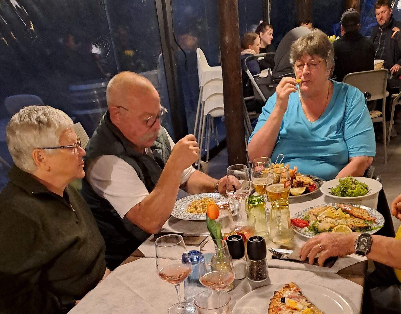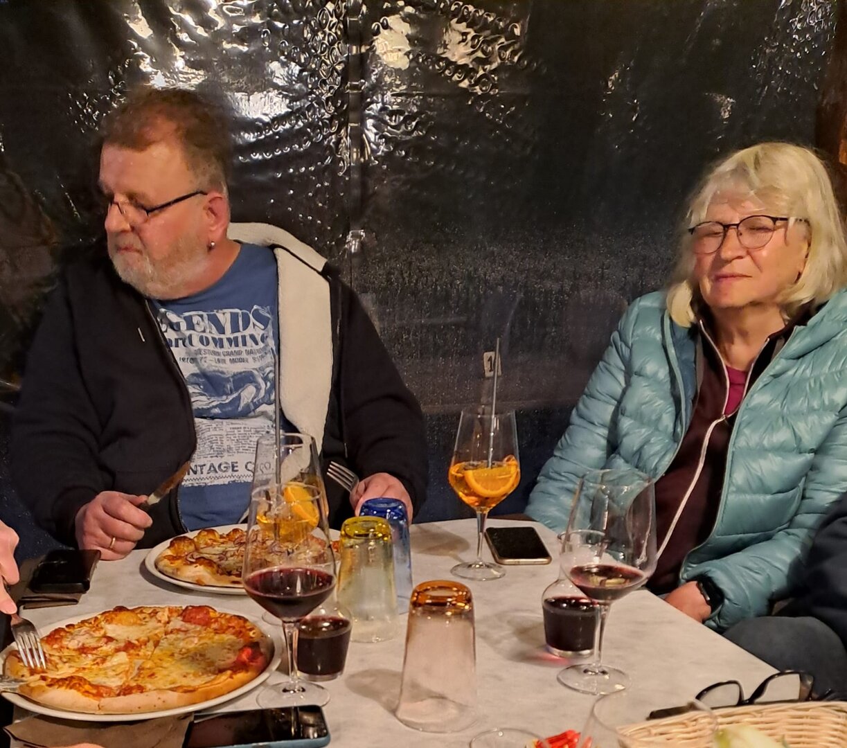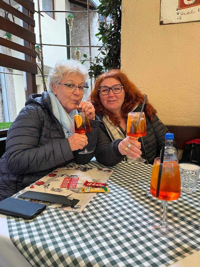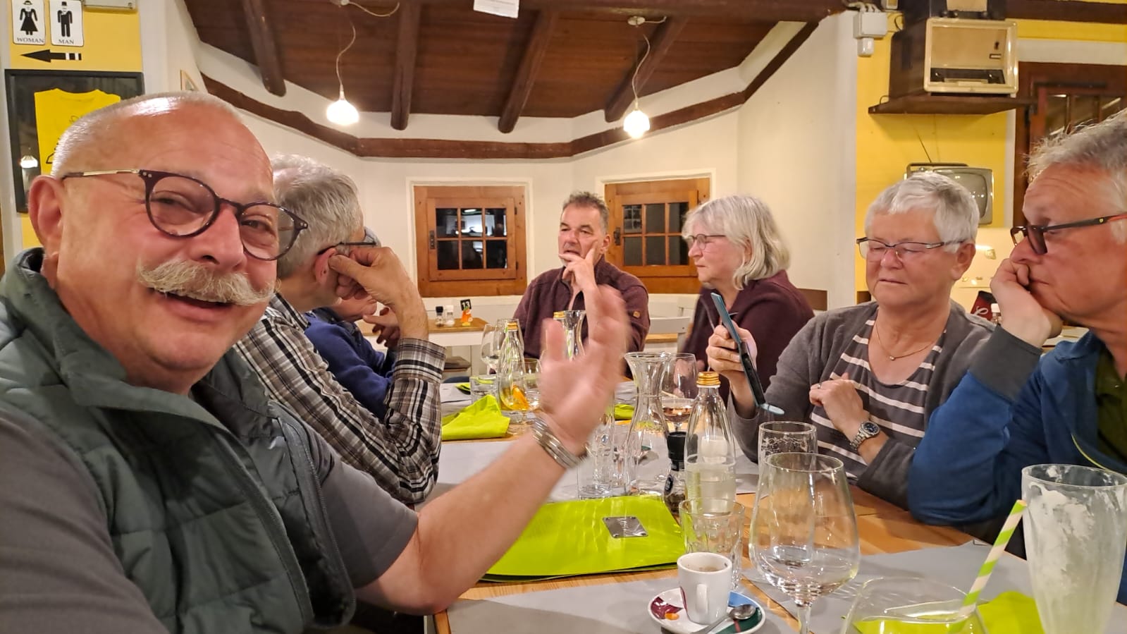 Am Samstag hatte man auf der Schifffahrt zu der Isola Bella und Isola Pescatori noch Glück mit dem Wetter. Es war zwar grau, jedoch fast regenfrei. Drei Mal wurde der Rollator auf das schwankende Boot gehievt und die älteste Teilnehmerin mit Mitte 80 kletterte hinterher. Auch auf den Inseln war das vorankommen nicht immer leicht. Doch gemeinsam klappte es ganz gut. Es war ein sehr schöner Ausflug. Gut die Hälfte schlief bei den schaukelnden Bewegungen der Bootes während der Rückfahrt ein. Abends war ein gemeinsamer Restaurantbesuch auf dem Nachbarcampingplatz angesagt.