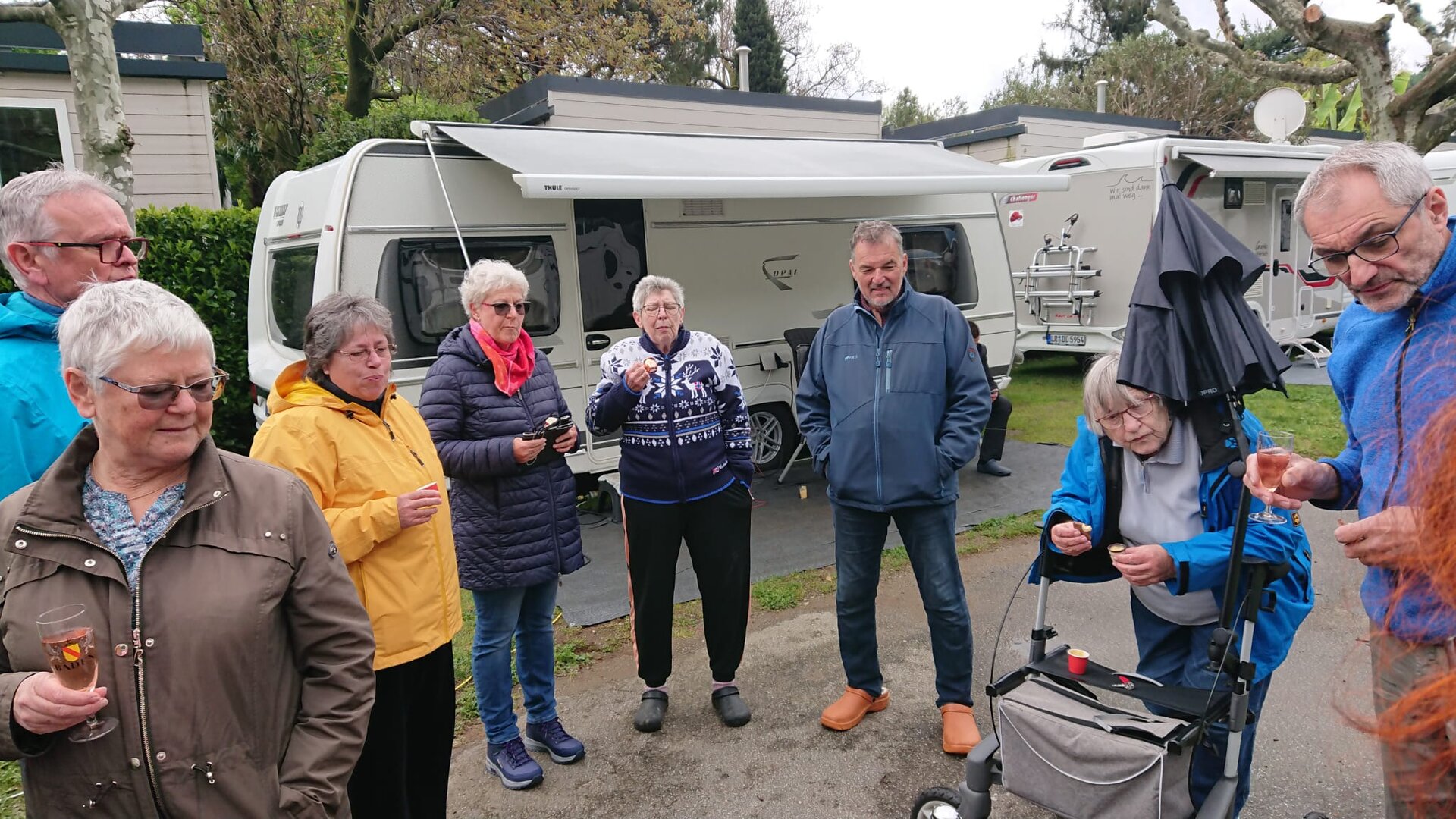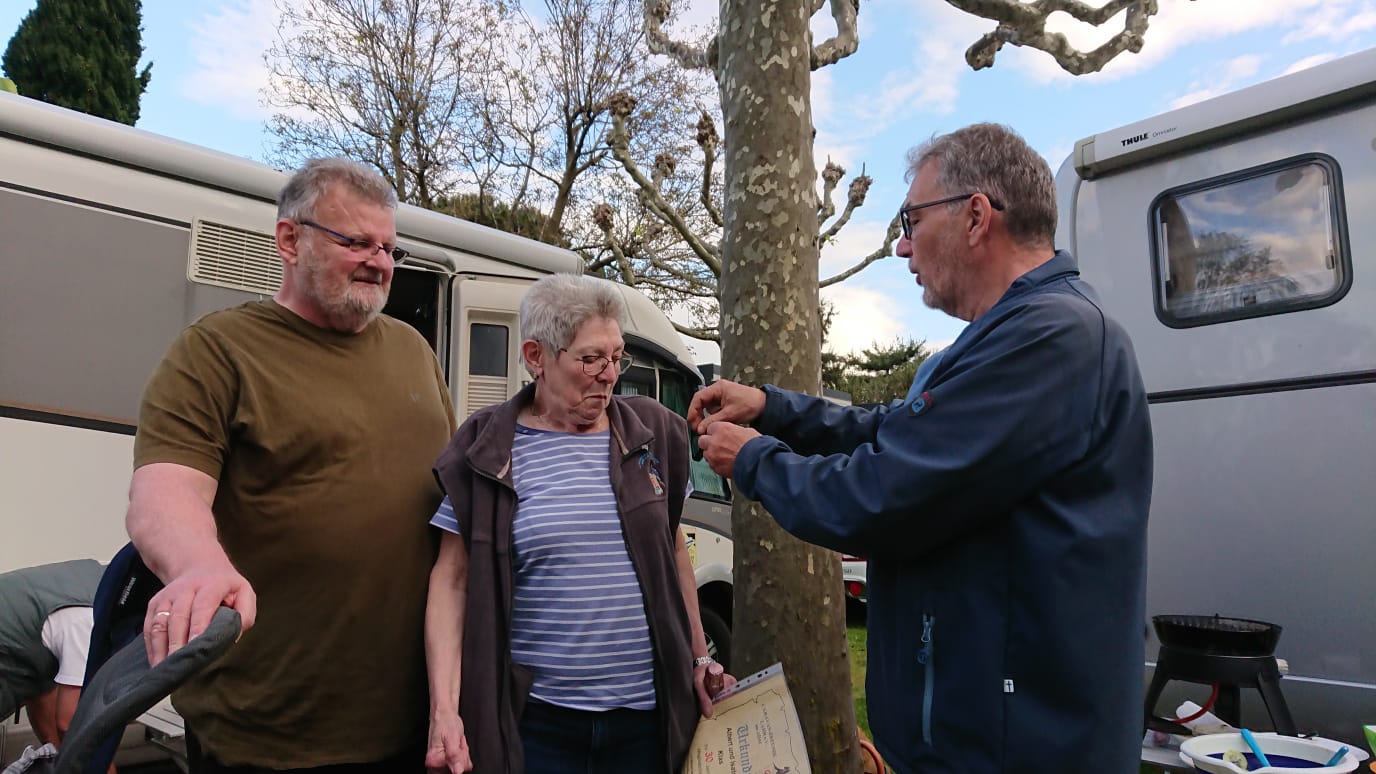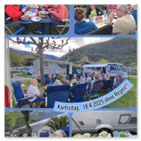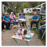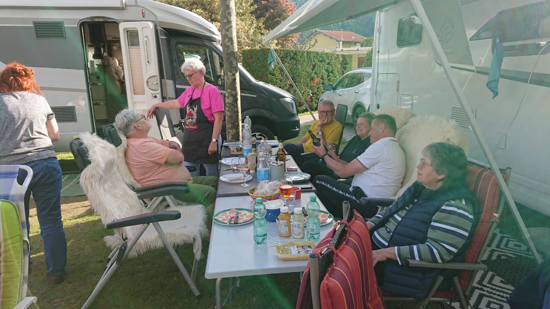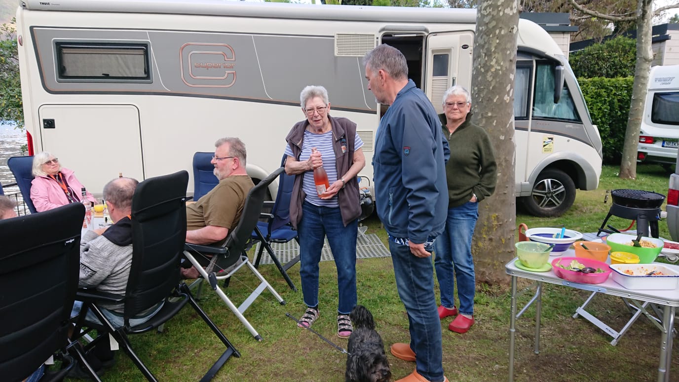 Dann der Schreck bei einem Ehepaar. Hilfe, wie kommen wir in unseren Wohnwagen. Die Tür hat sich selbst verriegelt. Schlüssel liegen drinnen, alle Fenster geschlossen. Wir müssen in den eigenen Wagen einbrechen. Die schmalste Person ist schließlich durch den Staukasten unter dem Bett gekrochen und hat die Türe von innen geöffnet. Tanja ist die Heldin des Tages.