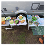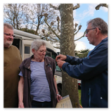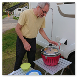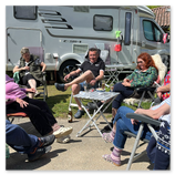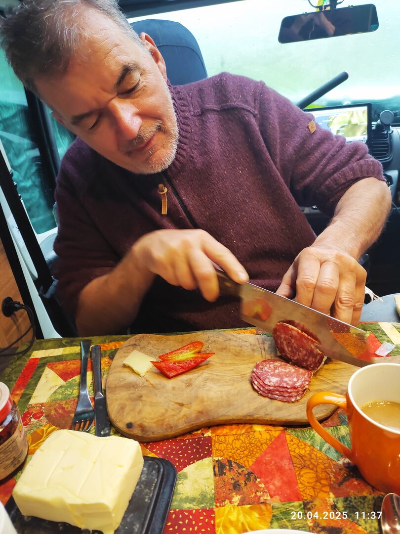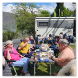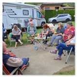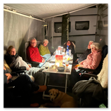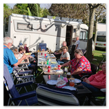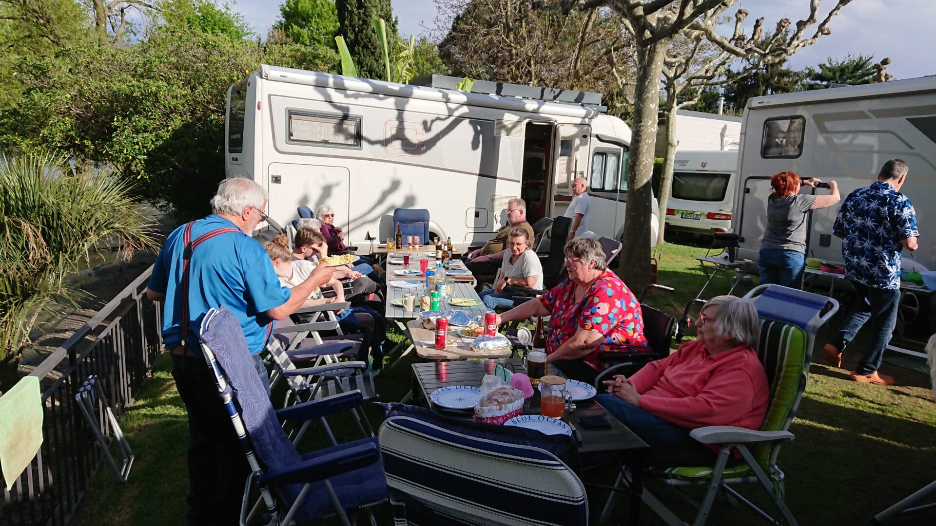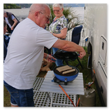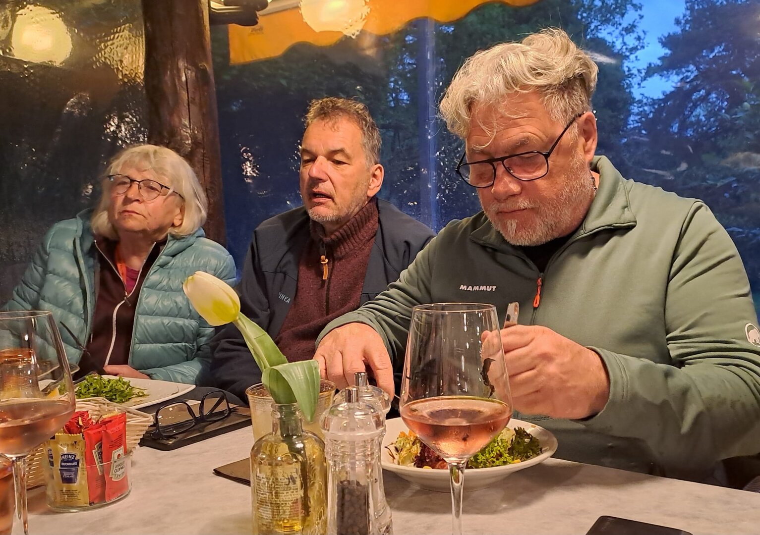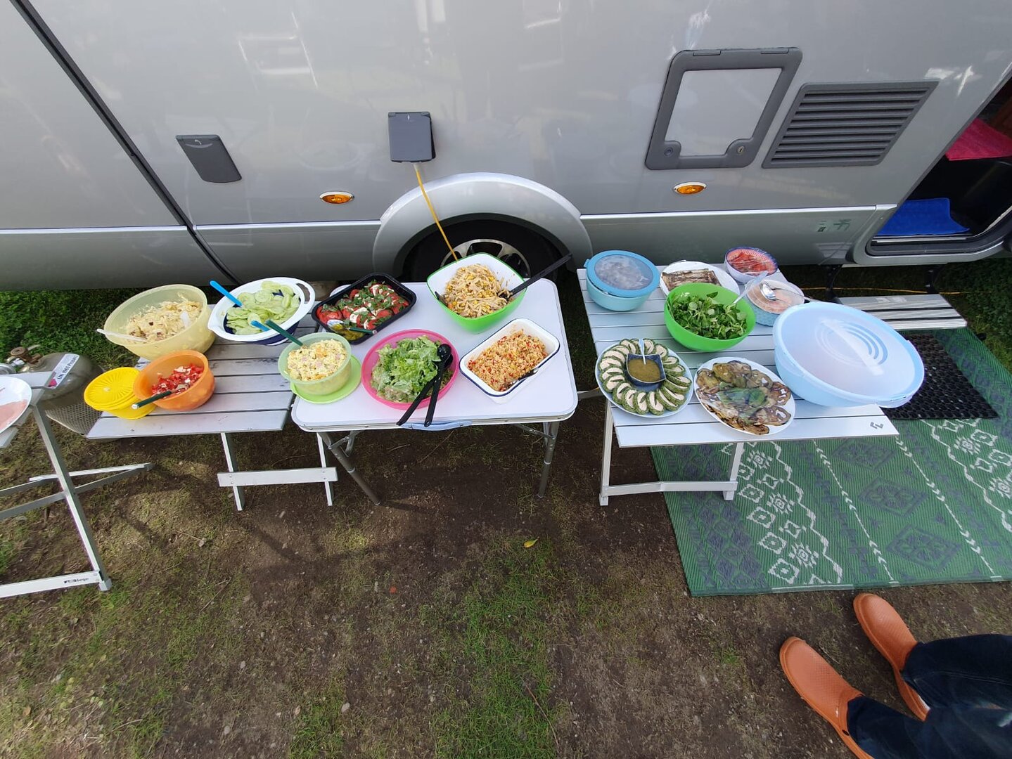 Dann der Schreck bei einem Ehepaar. Hilfe, wie kommen wir in unseren Wohnwagen. Die Tür hat sich selbst verriegelt. Schlüssel liegen drinnen, alle Fenster geschlossen. Wir müssen in den eigenen Wagen einbrechen. Die schmalste Person ist schließlich durch den Staukasten unter dem Bett gekrochen und hat die Türe von innen geöffnet. Tanja ist die Heldin des Tages.