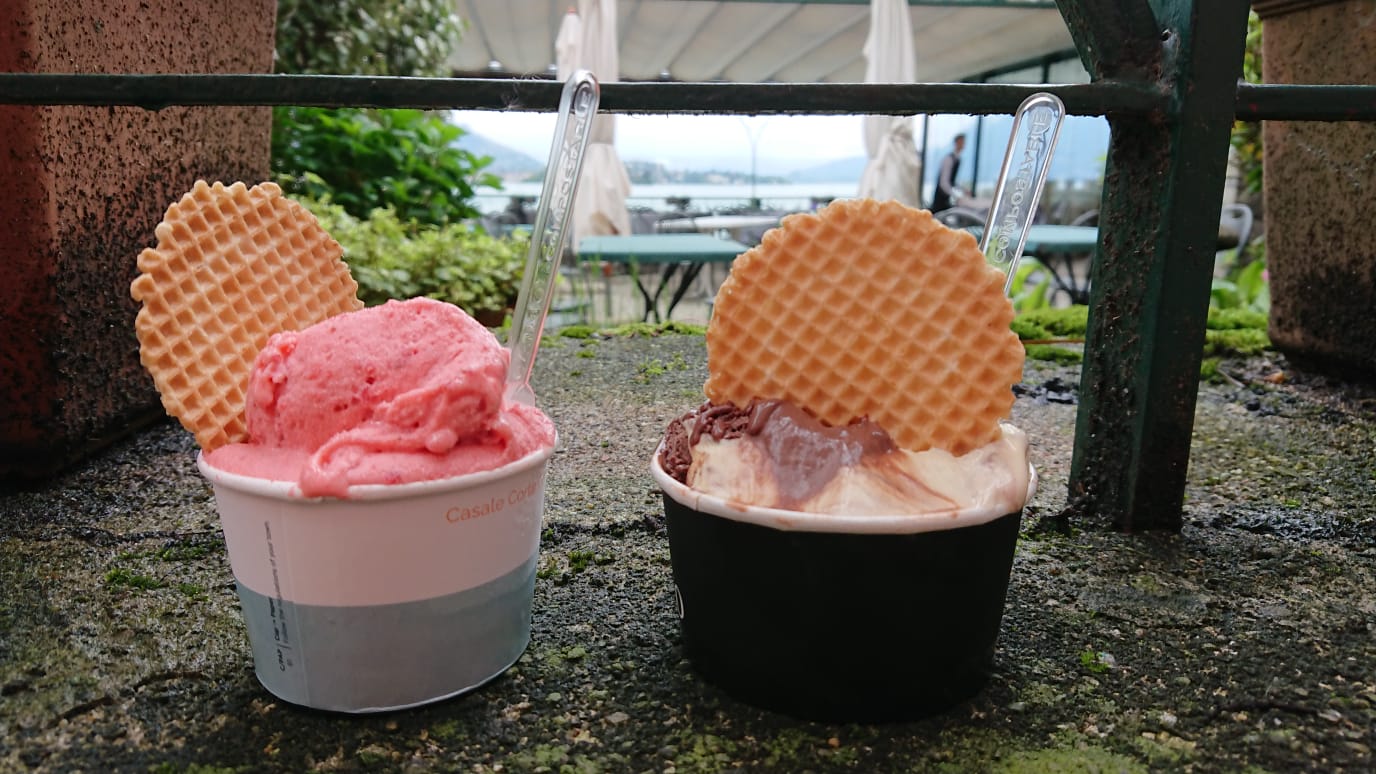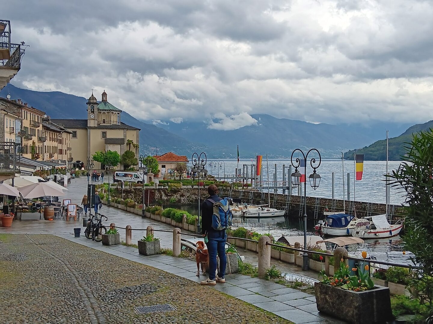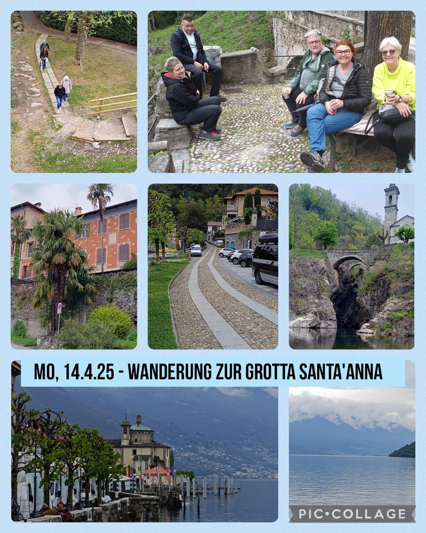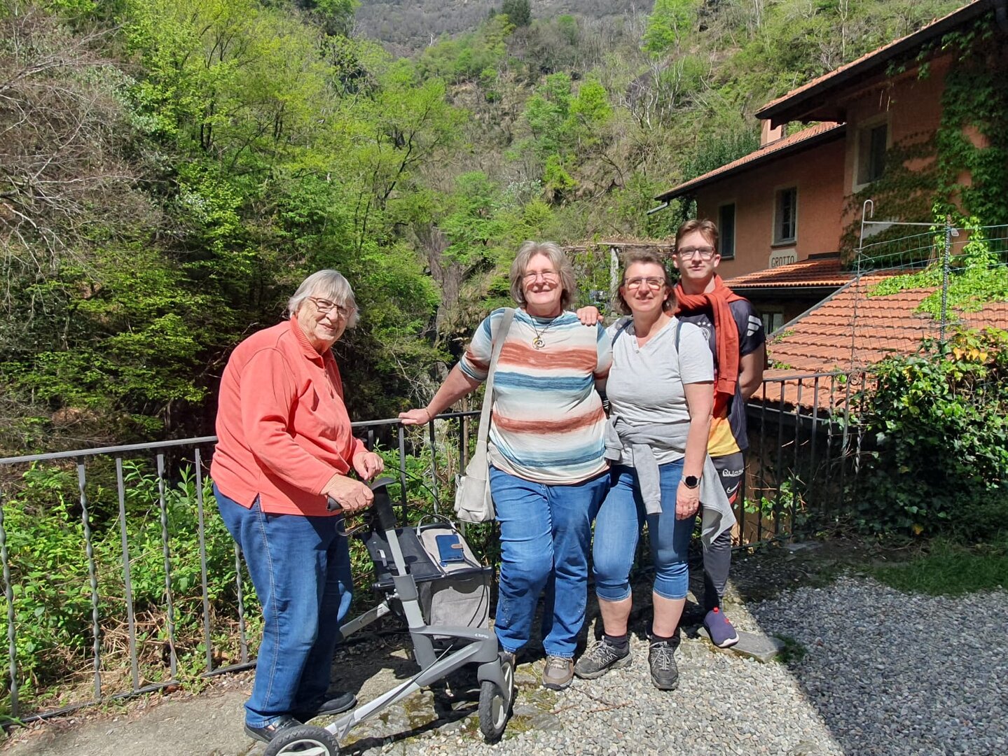 Dienstag fuhren 3 weitere Einheiten nach Hause. Die verbliebenen teilten sich in mehrere kleine Gruppen auf. Eine Truppe fuhr mit den Elektro-Fahrrädern den steilen Berg nach St. Agatha hoch. Doch da gab es auf einmal einen platten Reifen. Zum Glück hatte man ein Reparaturset dabei. Zwei Damen nahmen mit den Hunden den Fußweg zum selben Ziel in Angriff. Und dann gab es noch die Spaziergänger nach Cannobio zum Eis essen.
