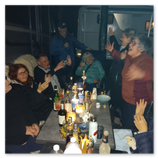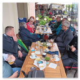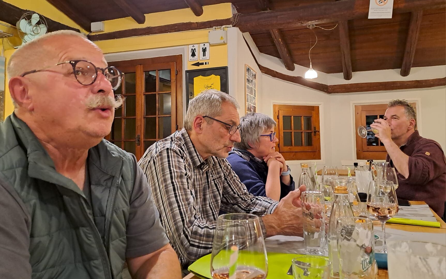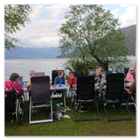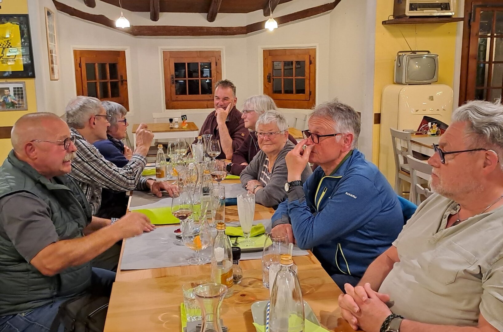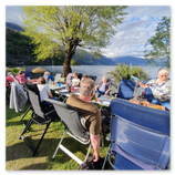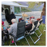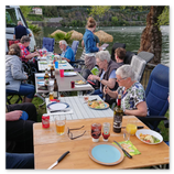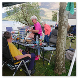 Ein Blick am Montag aus dem Fenster- die Sonne wagt sich hervor. Die erste Familie musste schon abreisen. Der Platz mit der schönen Aussicht über den See konnte leider nicht so genutzt werden wie geplant. Es zog meist ein kühler Wind vorbei. Daher traf man sich im Windschatten auf dem Weg, plauderte und stellte die mitgebrachten Sekte und Liköre der Allgemeinheit zur Verfügung. Harry Weis bedankte sich im Namen von allen Mitfahrenden bei den Familien Malach und Gür für die tolle Organisatoren der Ausfahrt.