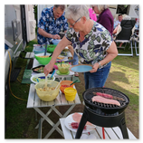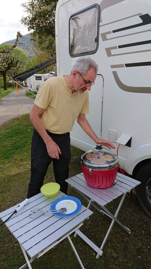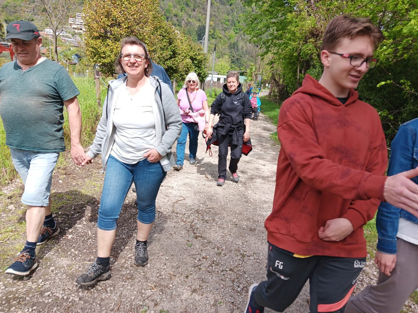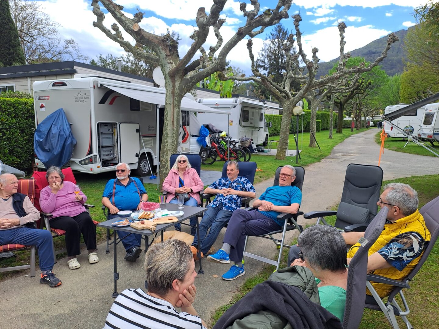 Der Karfreitag begrüßte die Caravaner mit sonnigen und warmen Wetter. Die Wandertruppe begab sich am Fluss entlang nach St. Anna. Imposant stürzt der Cannobino zwischen den Felsen hervor. Oben von einer mittelalterlichen Brücke überspannt. Dort oben kam auch die Autofahrergruppe an. Sie erlebte eine abenteuerliche Fahrt. Vorsichtshalber wurden die Spiegel in den engen Gässchen eingeklappt. Nachmittags wurden dann schnell die Salate für das Grillbüffet vorbereitet, denn man hatte beschlossen das gemeinsame Grillen vorzuverlegen. Dort holte der 2. Vorsitzende Harry Weis die Ehrung für 30 Jahre Mitgliedschaft von Bella und Albert Klas nach. Der treue Begleiter Regenschirm kam die nächsten Tage immer wieder zum Einsatz.