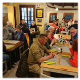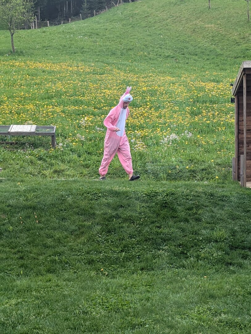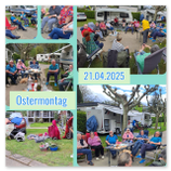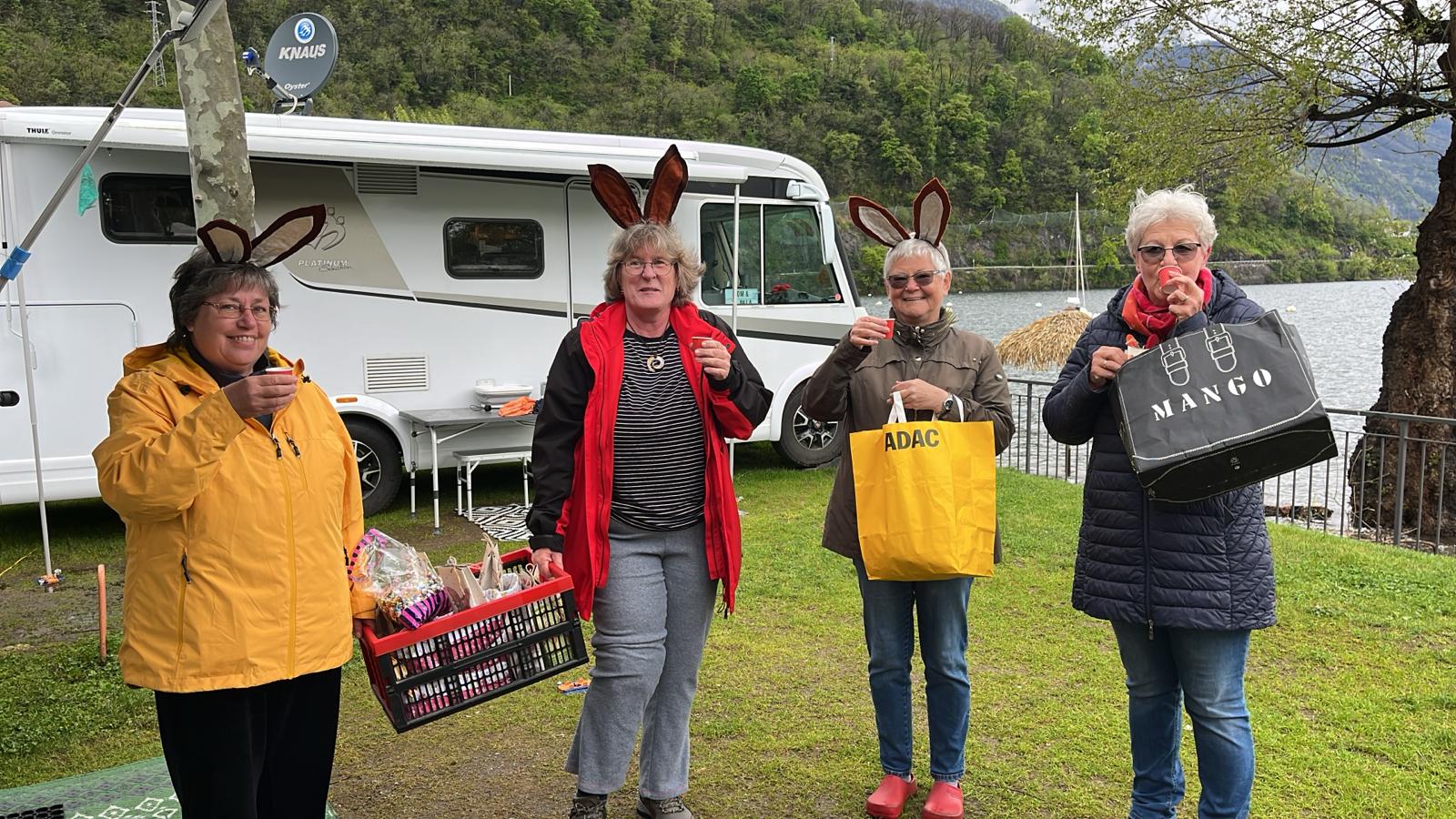 Da der Ostersonntag mit starkem Regen begann, verschob der Osterhase sein Kommen auf den Nachmittag. Die Marktbesucher in Cannobio kämpften sich morgens mit Regenschirmen durch. Nachmittags konnten die 4 Häsinnen ihre Geschenke trockenen Fußes verteilen. Das gut gefüllte Körbchen des Vereines wurde von gebastelten Gaben erweitert. Der selbst gemachte Eierlikör wurde in geselliger Runde schnell geleert.