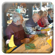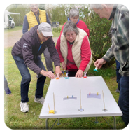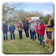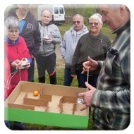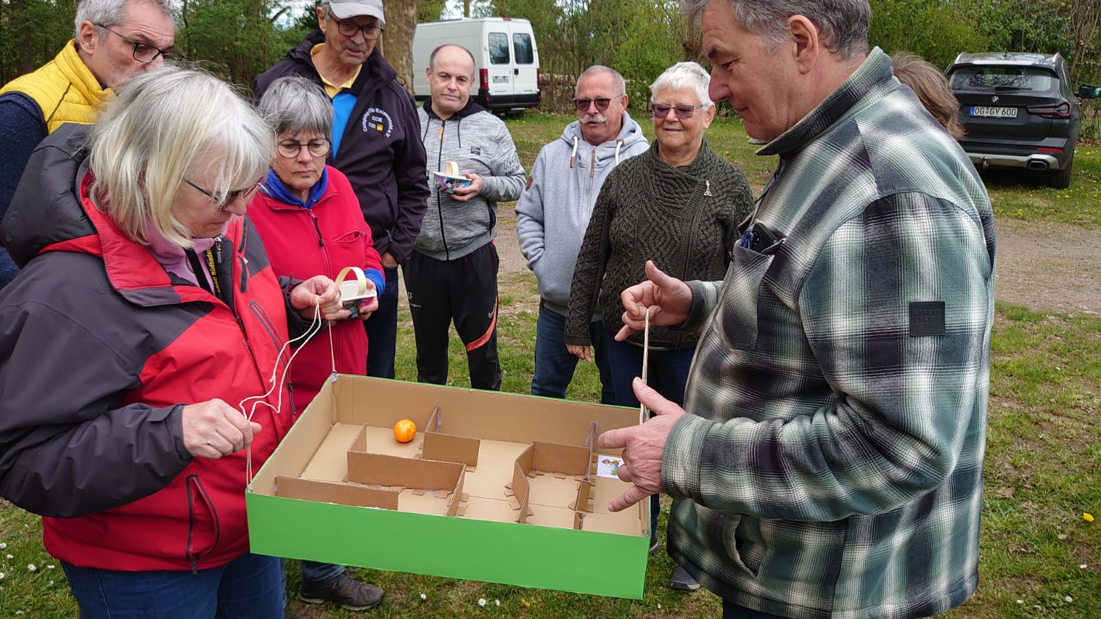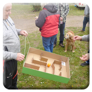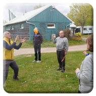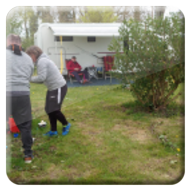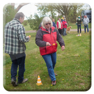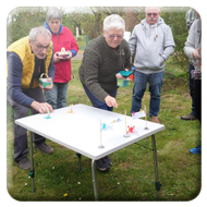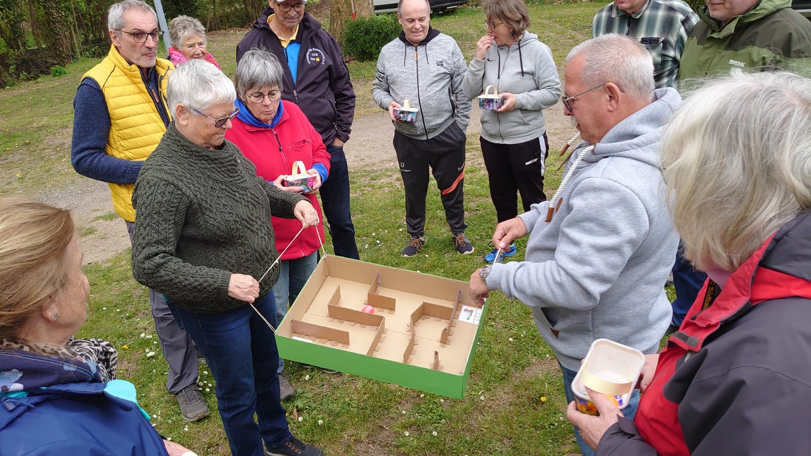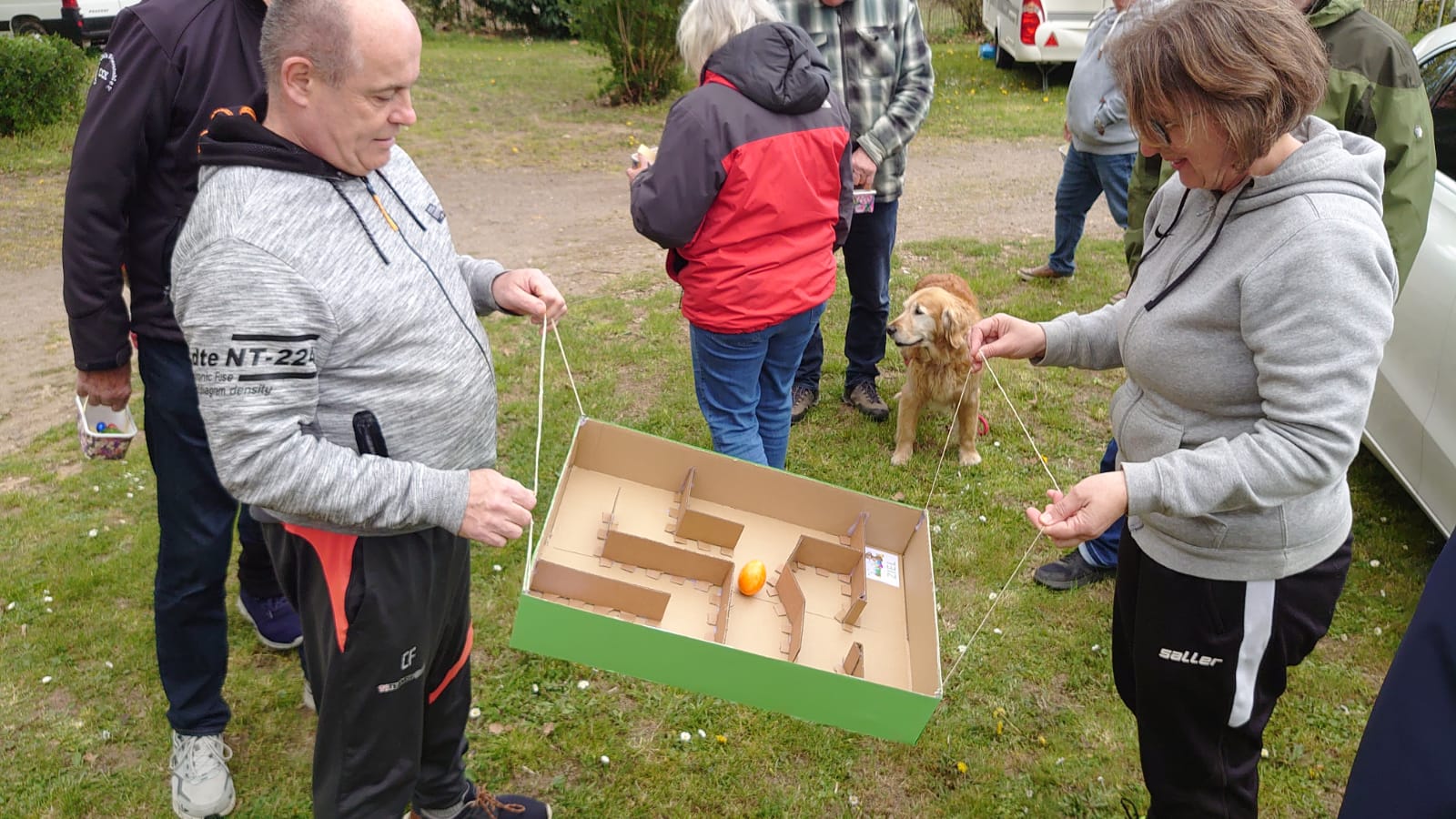 Damit ein bisschen Bewegung in die Truppe kam veranstalteten Yvonne Pfaff und Michaela Gottlieb am Samstag-Nachmittag eine Oster-Olympiade. Die 16 Teilnehmer zogen gemeinsam von Station zu Station auf dem Rundkurs über den Platz. Es wurden Sammelkörbchen gebastelt, Wörter enträtselt und Spiele mit österlichem Bezug bestritten. So wurden Darts auf Luftballons geworfen, Osterhasen hüpfen gelassen und ein größeres Plastikei über die Schnur geworfen. An jeder Station gab es in dem Körbchen Osternaschereien zu sammeln. Bunte Eier erhielt man bei dem Eierlauf und dem Kuller-Labyrinth. Alle hatten viel Spaß bei den Aktionen wobei es nicht um Platzierungen ging. Nach einer Stunde wurden den Teilnehmern Plaketten in Form Cornflakes-Schokomedallien übergeben und ein gemeinsames Siegerfoto geschossen.