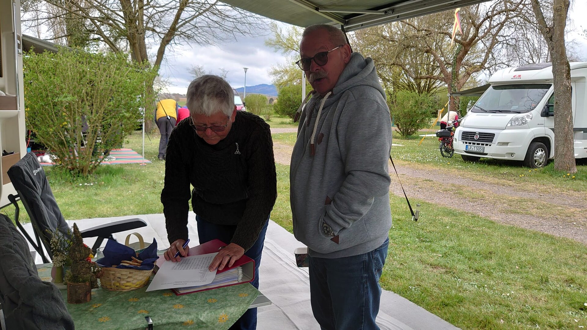 Nur kurz über den Rhein ins elsässische St.Pierre führte erste Ausfahrt des Jahres 2026 die Caravan-Freunde Lahr im ADAC. Auf dem kleinen Campingplatz mit einfacher Ausstattung trafen sich 6 eigene und 2 Schnupper-Einheiten über Ostern. Ab Donnerstag reisten die ersten Camper mit ihren rollenden Zweitwohnungen an. Mit großem Hallo wurde sich nach der Winterpause begrüßt. Warm eingepackt und mit Decken über den Beinen setzte man sich zur Kaffeetafel zusammen. Immer wieder ging der Blick auf das benachbarte Storchennest. Zuerst waren es nur Stöckchen die die gefiederten Nachbarn anschleppten und verbauten. Dann das Gras zur Auspolsterung. Und auch die Zeugung des Nachwuchses wurde beobachtet. Ob sich einige der Camper davon inspirieren ließen wurde nicht publik gemacht.